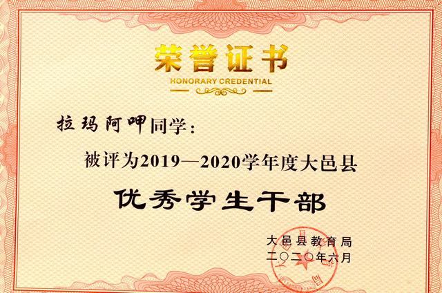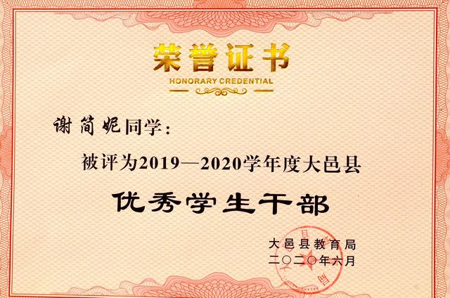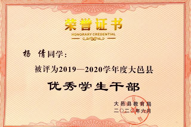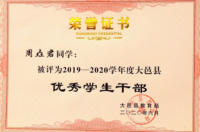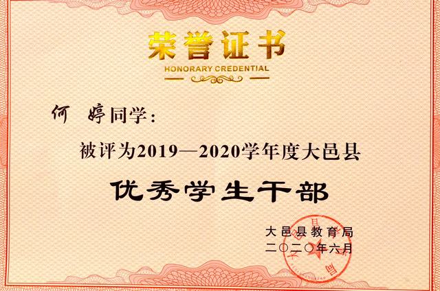 大邑中学2019—2020学年度大邑县优秀学生干部