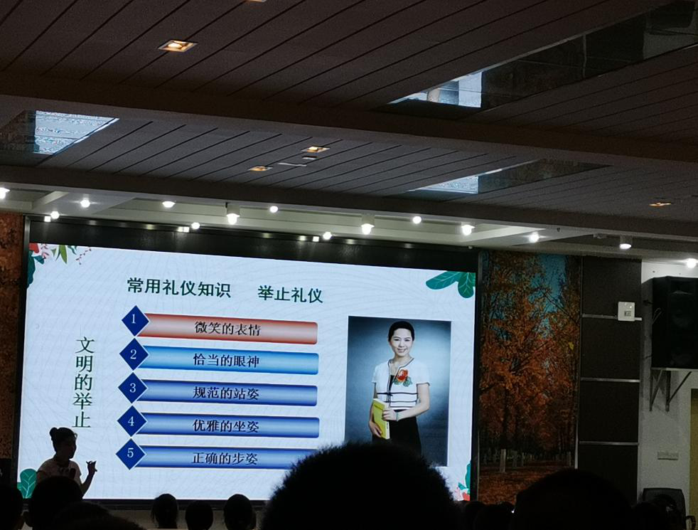 吴老师首先讲了礼仪的重要性。通过自身的成长经历,现身说法告诉大家“不学礼,无以立”,让同学们认识到礼仪之重要。在讲述中,吴老师通过图例分析、实例列举、外交故事等,教会同学们在生活中如何做到有礼有节。