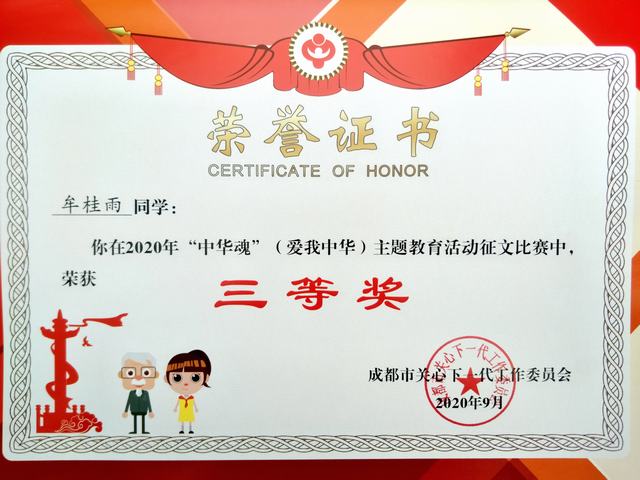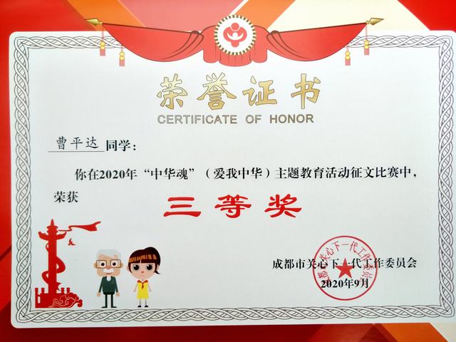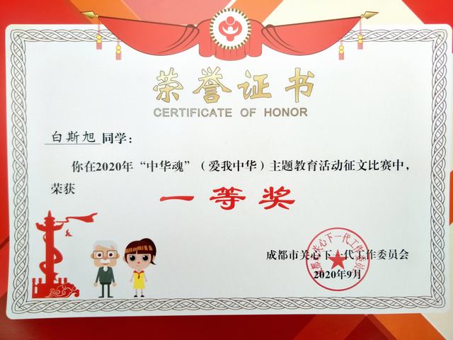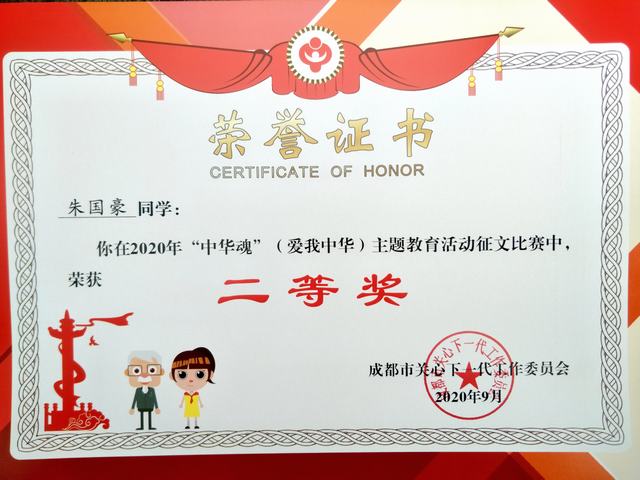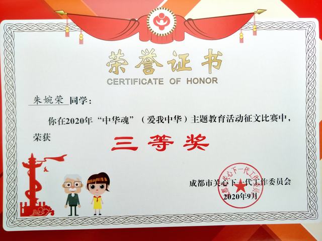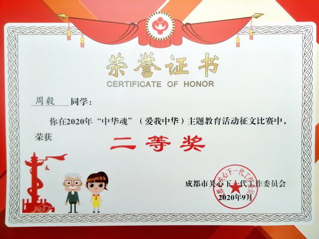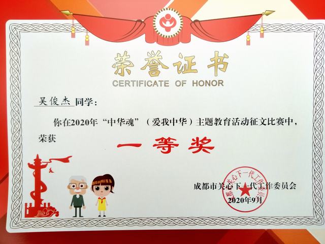 我校学生在2020年“中华魂”(爱我中华)主题教育活动征文比赛中荣获奖项
