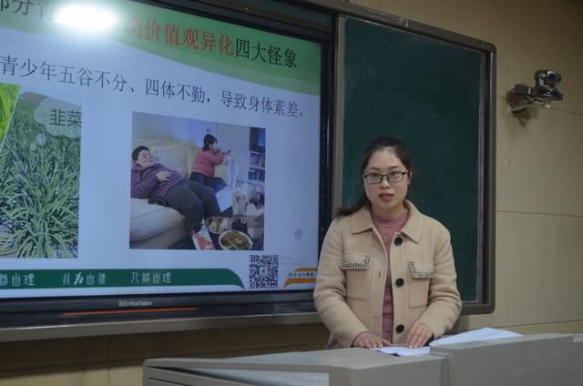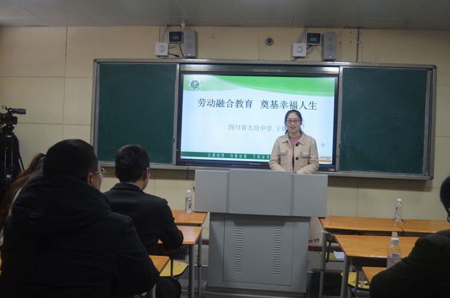 下午3:40,大邑中学德育处副主任王姝厂带来了一场主题为《劳动融合教育 奠基幸福人生》的讲座。