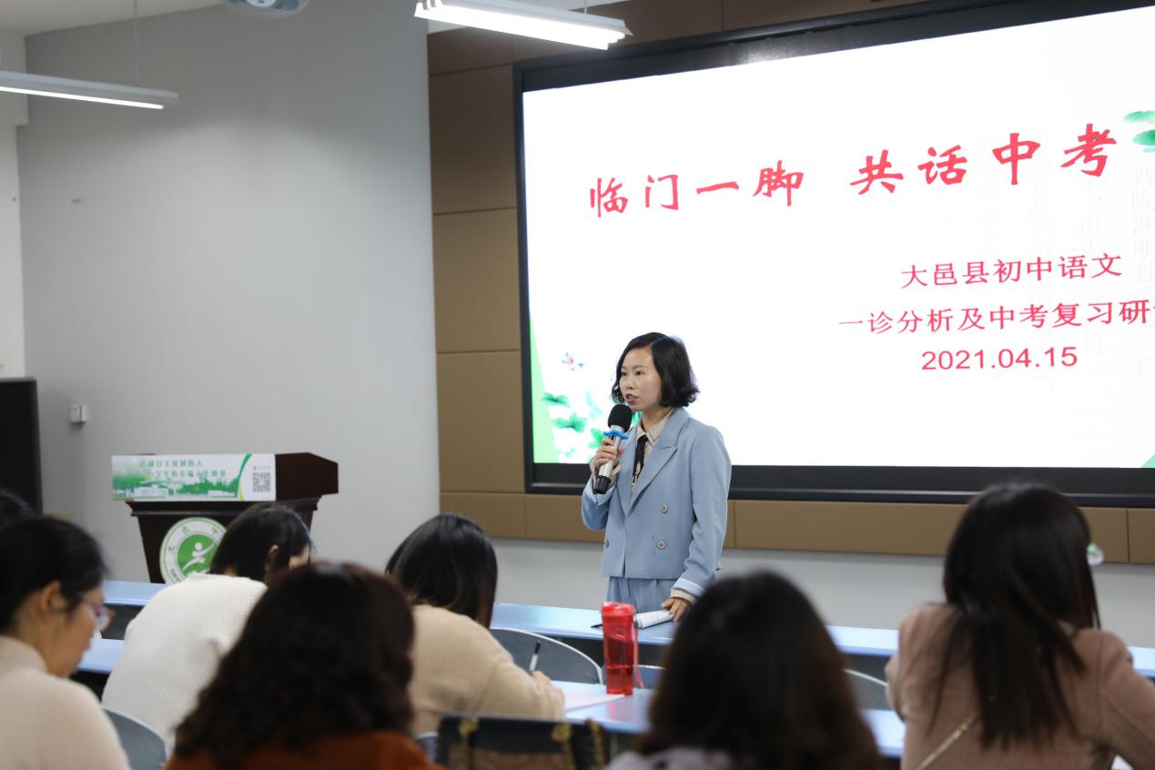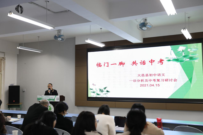 为了引领教师们深入研究中考语文新动向,交流复习策略,提高复习效率,2021年4月15日,大邑县教育局中教室副主任刘小伦组织全县九年级语文教师在我校召开了主题为“临门一脚,共话中考”的中考复习研讨会。