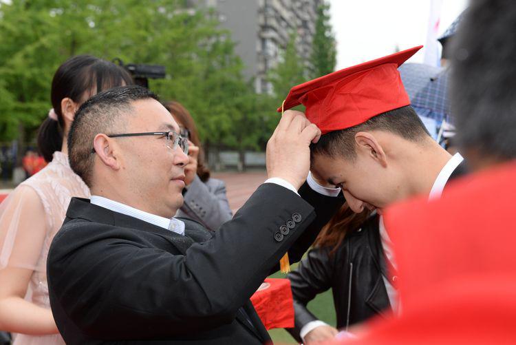 聂校长为学子整理衣冠