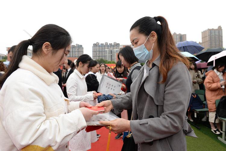 顾书记,聂校长带领学校领导夹道欢迎步入成人门的家长和学子
