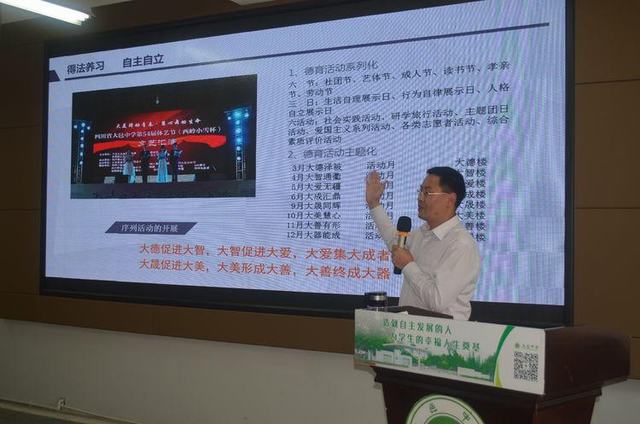 下午3:40,大邑中学副校长刘进军带来了一场思想有高度、理论有深度的讲座——《主题序列化的德育活动体系构建》,从三大方面勾勒了大邑中学主题序列化的德育活动体系蓝图。