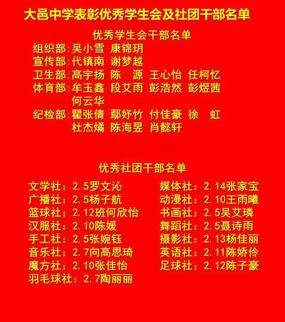 廖老师公布表彰名单