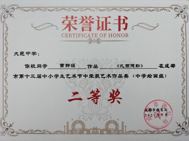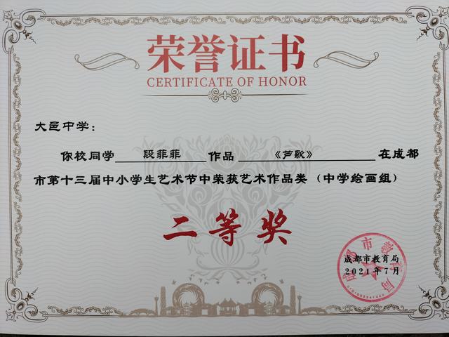 我校学生在成都市第十三届中小学生艺术节中获奖