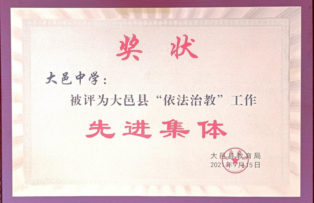 【喜讯】我校获“大邑县‘依法治教’工作先进集体”荣誉称号