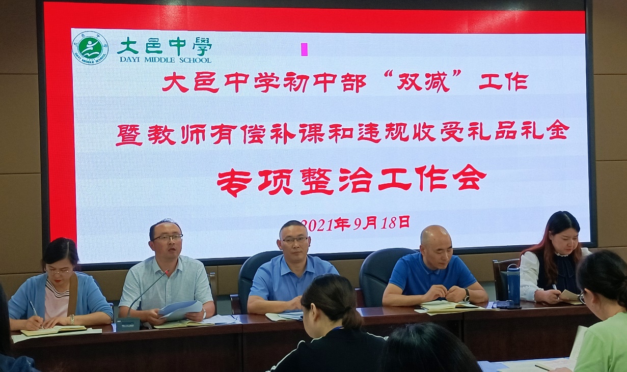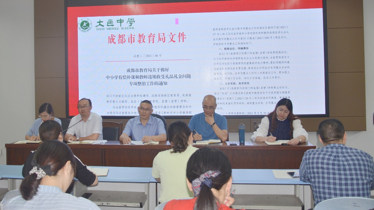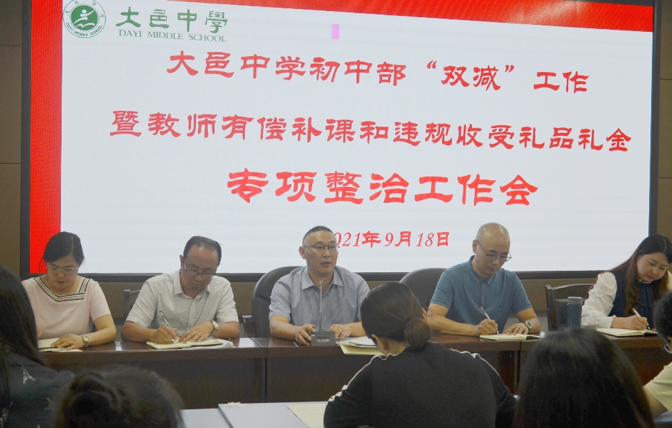 大邑中学初中部召开“双减”工作暨教师有偿补课和违规收受礼品礼金专项整治工作会