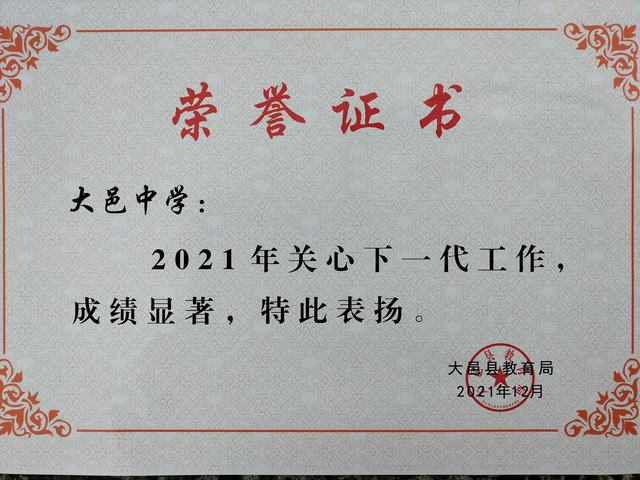 我校2021年关心下一代工作受到表彰