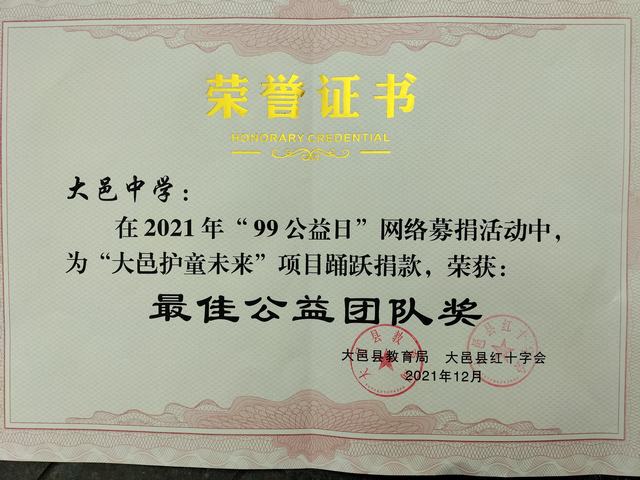我校在2021年“99公益日”网络募捐活动中荣获最佳公益团队奖