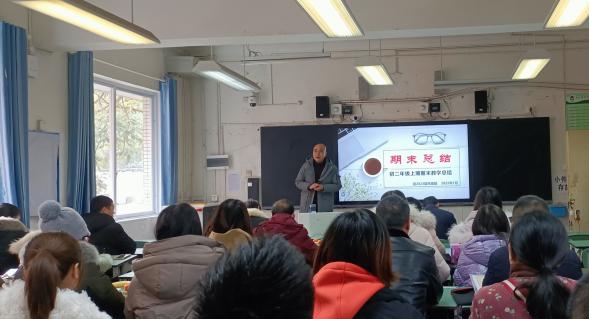 全校期末总结会上,初中部教务主任侯佚、初中部德育副主任邬筱,分别从教学、德育方面回顾本学期的工作成果。让全体教师看到学校的办学成绩,认同学校的办学理念,统一思想,齐心协力。