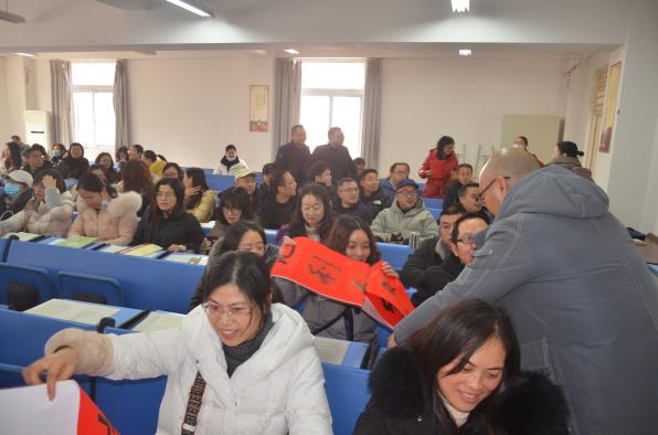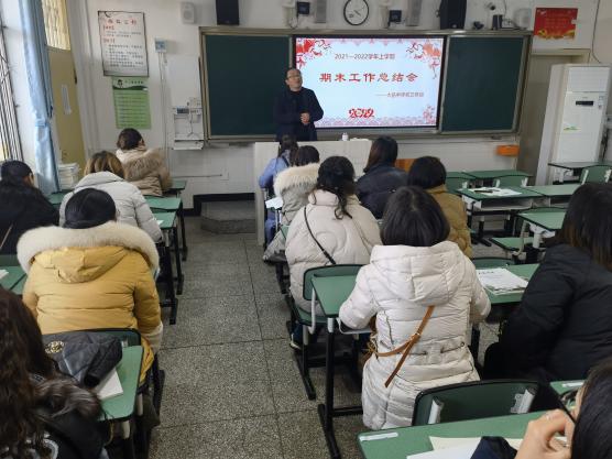 初中部校长王波作总结发言。他肯定了全体教师一学期以来的付出和取得的成绩,明确了今后努力的方向。他指出,办人民满意的学校不是一句口号。这需要我们每一位大中人用自己最大的努力,用我们最坚定的信心,把所有人的力量凝结在一起才能实现。他希望全体教师在假期里加强自我学习和提升,用最好的状态迎接2022。最后,祝福全体教师虎年吉祥!虎虎生威!