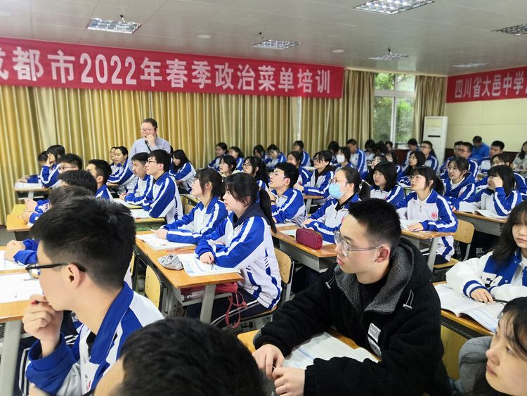 为全面贯彻党的教育方针,落实立德树人的根本任务,展示思政课程育人成果,助推政治组市级课题《高中思政课融合党史学习教育实现政治认同实践研究》研究,3月28日,我校举办了2022年春季成都市政治菜单培训第一期活动。此次活动由曾强老师主持。