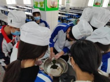 4月1日,学校组织初、高中部分同学,在食堂师傅的指导下,学习制作青团。艾草捣汁,拌入糯米粉揉成面团,分成小块、摊平、包馅儿,揉团、上屉、蒸熟,一盘不甜不腻、略带清香的翡翠色青团,就美滋滋呈现在眼前了。