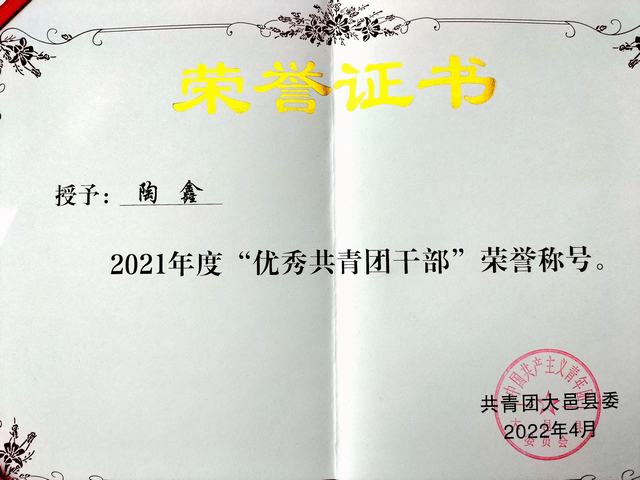 我校教师陶鑫荣获2021年度“优秀共青团干部”称号