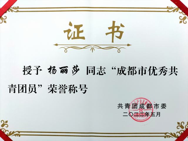 我校学生杨丽莎等被评为2022年度成都市优秀共青团员