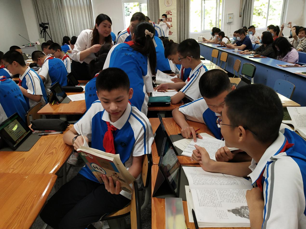 信息化课改优质课展示活动,分学科进行。语文学科的熊丽萍、邓茜媛、胡晓敏三位老师,选择不同文体,巧妙设计教学各环节,充分体现课改下学生学习活动要求和语文学科素养的要求,为参会老师提供了可资评议和借鉴的范例。数学学科陈茜、杨成军老师,精心设计学生的前置学习,根据前置学习中学生存在的问题设计教学内容,深入浅出地引导学生解决认知问题,培养学生的发散思维。英语学科毛周颖、王涛老师的课,充分体现我校英语学科阅读课研究的基本主张,在前置学习、课堂学习、课后学习三环节上,既体现了信息化课堂的一般要求,又充分尊重英语学科特点,将英语思维方式和英语语感培养相结合,取得了很好的效果。