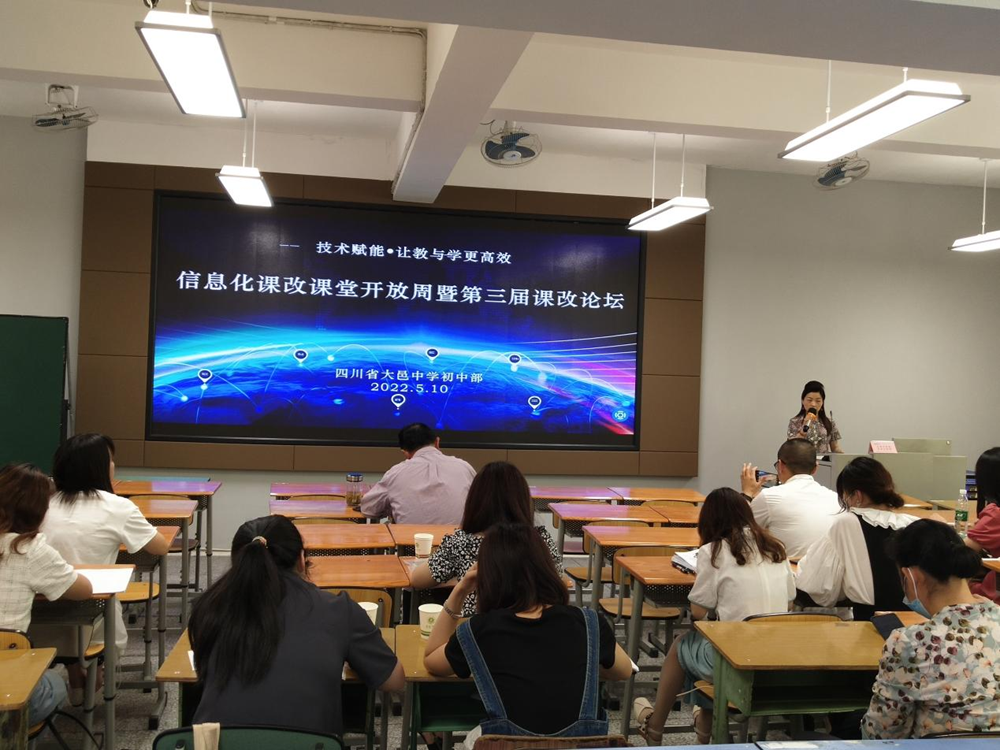 我校信息化课改班的家长代表,大邑县教育局中学教研室部分领导,全县信息化课改学校、崇州市信息化课改学校等教师代表参加了本次活动。