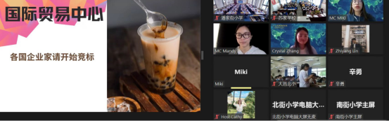 七年级13班的何超乙同学,扮演“外汇兑换银行”工作人员,先后与来自新加坡学校代表、土耳其学校代表、越南学校代表、马来西亚学校代表,进行线上虚拟贸易。同学们踊跃参与商品购买,场面热闹非凡,在各国竞价结束后,“外汇兑换银行”迅速计算出各国货币汇率,实时兑换,帮助其实现交易。欢乐的氛围极大地激发了同学们的热情,直到课堂结束时还意犹未尽。