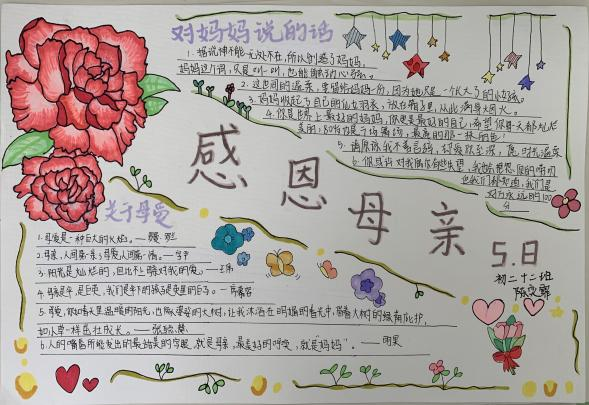 同学们用真挚的笔触,画出心目中母亲最美的模样,讴歌母爱的伟大。一份份精美手抄报承载的是大家对母亲最真挚的关爱与祝福。