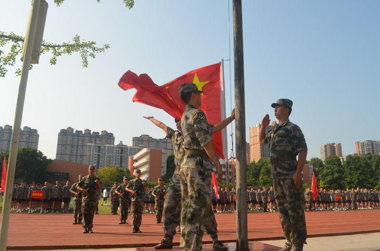 庄严的升旗仪式上,同学们国歌声嘹亮。随后整齐划一的步子,摄人心魄的呐喊,威武有力的英姿,黝黑泛红的皮肤,鹰隼般犀利的眼神,如雨挥洒的汗珠,无不检验着集训的艰辛与顽强。我们仿佛听到那德才兼备、吃苦耐劳、勇往直前的青年在说:请师长放心,请祖国放心。