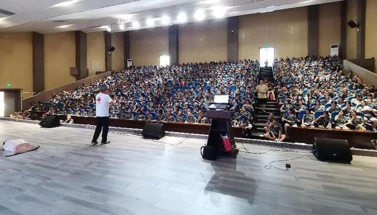 7月11日下午,大邑县红十字会深入大邑中学开展“三献”宣传和应急救护知识普及进校园活动,活动通过现场直播的方式在主会场和分会场同时进行,活动超900名高一新生参加。