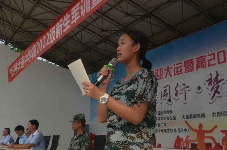 军训思来苦后甜,人生励志趁少年,军训既是磨炼,更是收获。四川省大邑中学校长聂长志发表讲话:愿同学们以梦为马,不负韶华,做到掉皮掉肉不掉队,流血流汗不流泪,争做积极、勇敢、团结、奋进、坚强的大中人。