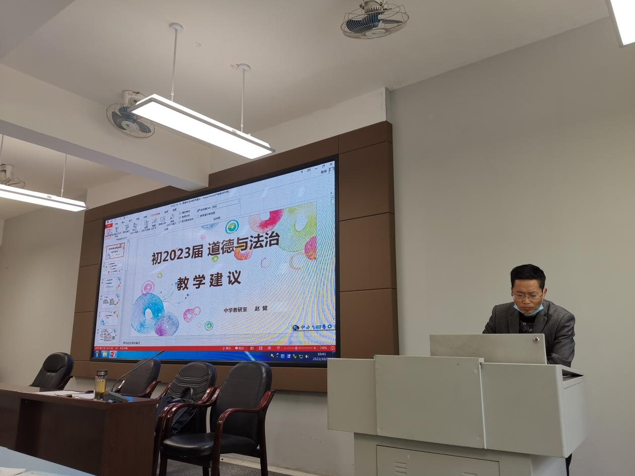 会议第三项内容,赵健老师对2022年会考试卷进行分析与指导。他从会考主观题具体问题进行指导,指出答题思路与训练技巧,指出各年级重点内容。他还要求全县教师抓实教材,理清思路,抓住重点,有的放矢,培养学生分析问题、解决问题的能力。