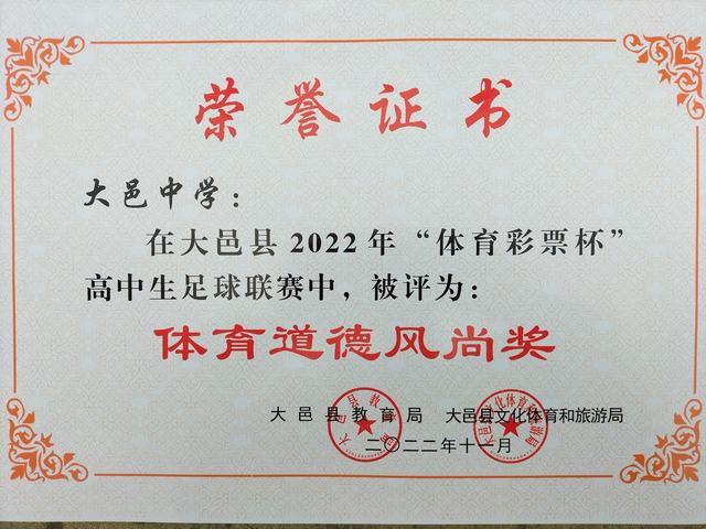 我校在2022年大邑县“体育彩票杯”高中生足球联赛中荣获“体育道德风尚奖”