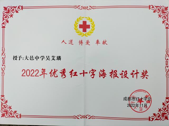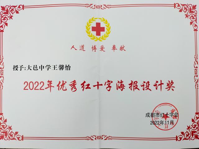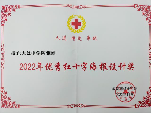 我校学生王馨怡、沈梦楷、李鑫杨、吴艾璘、杨好、陶雅婷、安彤荣获2022年优秀红十字海报设计奖