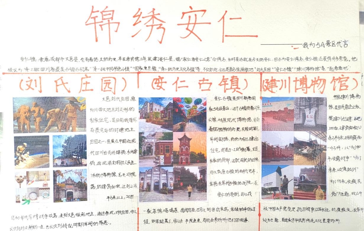我县安仁古镇已成功创建国家5A级旅游景区,为了助力成都市争创全国文明典范城市,进一步推动广大市民文明素养和城市文明程度的显著提升,营造文明和谐氛围,同学们纷纷走进安仁古镇景区,用行动践行“我为5A景区代言”。