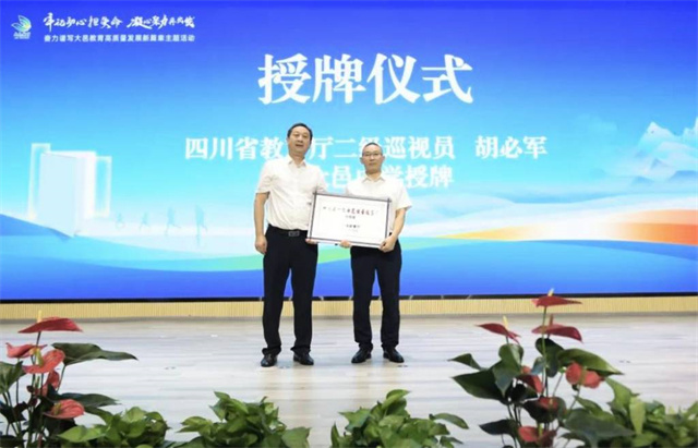 县委常委、宣传部部长吴涛致欢迎辞,省教育厅二级巡视员胡必军为大邑中学“四川省一级示范性普通高中(引领型)”授牌。
