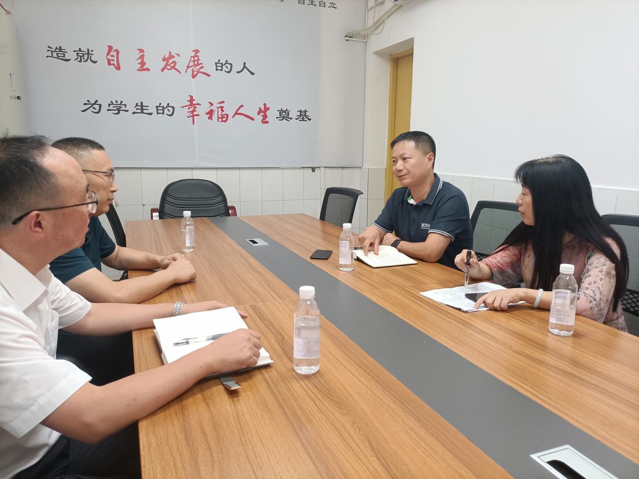 文辉一行实地考察了学校课桌椅适配度情况;实地调研了图书大楼、校史馆的建设使用情况;实地查看了融合实验室、数字实验室、体育馆、寝室等专用教室及场所,现场查阅了学校教育装备工作佐证材料,并召开座谈会。