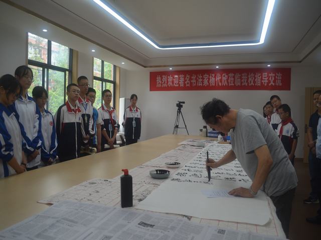 为了弘扬中华优秀传统文化,营造浓厚的校园文化氛围,感受书法艺术的博大精深。2023年9月28日上午,学校邀请中国书法家协会会员、中国书法家协会教育委员会委员、四川省书法家协会理事、四川省书法家协会教育委员会主任杨代欣莅临我校指导,并开展了“翰墨飘香润成长,星火燎原正当燃”主题教育活动。