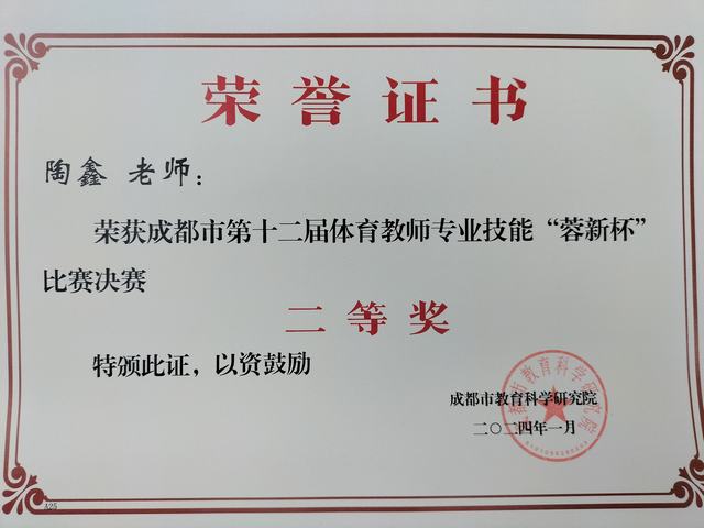 我校教师陶鑫荣获成都市第12届体育教师专业技能“蓉新杯”比赛决赛二等奖