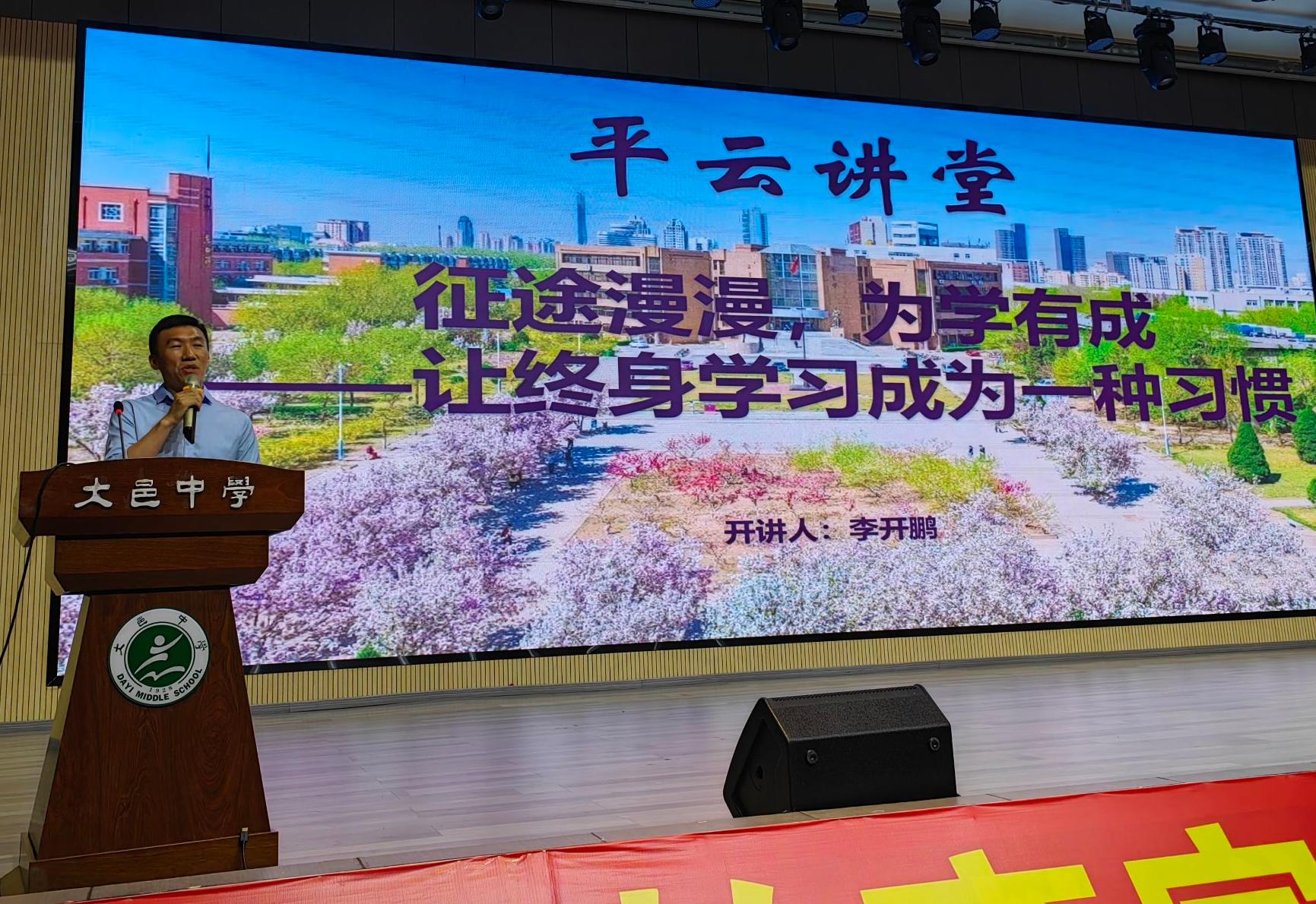 9 月 23 日,我校开展以“征途漫漫,为学有成——让终身学习成为一种习惯”为主题的理想信念教育活动。此次活动特邀南开大学优秀毕业生李开鹏担任主讲人。