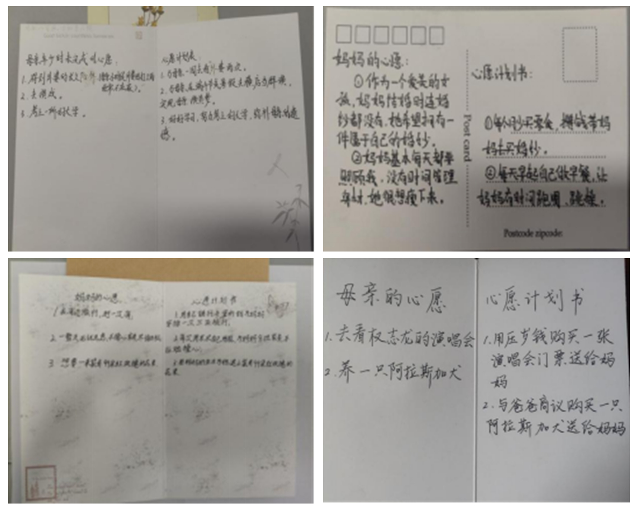 每个妈妈都曾是怀揣梦想的少女。时光流转,那些未完成的心愿藏在了对家庭的付出里。我们化身“梦想倾听者”,用真诚叩开妈妈的心扉。同学们精心制作的心愿计划书,不仅记录下妈妈的梦想,更规划出一个个暖心行动:与母亲共学绘画课、用压岁钱定制母女旅行、帮母亲重启烘焙梦想……这些带着温度的行动指南,正在书写两代人的梦想续章。