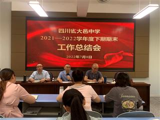 2022-07-09——四川省大邑中学初中部召开2021-2022学年下期期末工作总结会7月8日,我校初中部在大爱楼会议室,召开2021-2022学年下期期末工作总结会。优化教学手段落实核心素养大邑中学校长聂长志通报本年度中高考成绩,充分肯定学校教育教学工作取得的良好成绩,以及老师们的辛勤付出。同时,他提出两条建议:一是要求教师紧跟时...阅读 - 09 2022.07