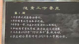 2020-09-011.召开德育处会议,布置新学期工作2.开学典礼筹备3.综合素质评价系统填报4.班主任例会5.校园值勤安排6.住管部准备开学学生入住事宜7.德育展板的制作与更新8.开学疫情防控演练阅读 - 01 2020.07