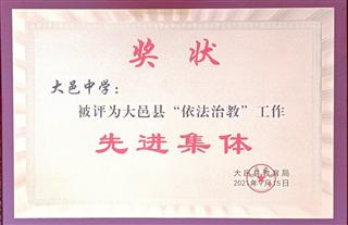【喜讯】我校获“大邑县‘依法治教’工作先进集体”荣誉称号